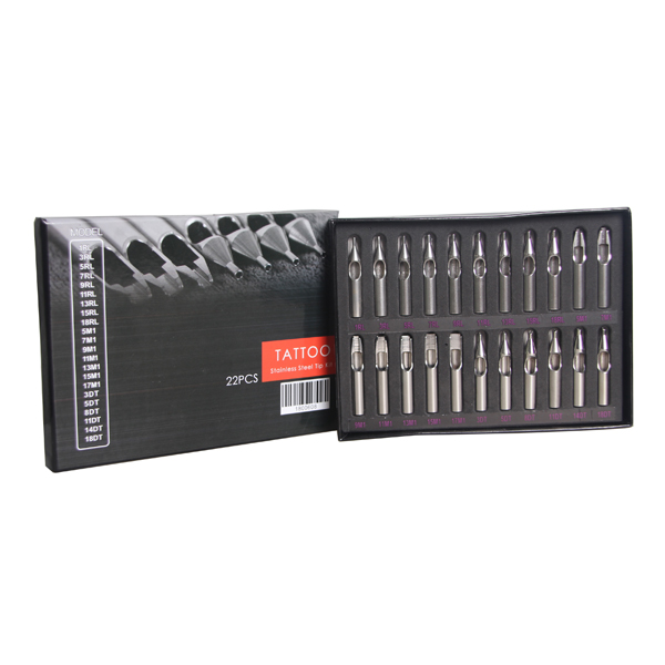 GT26 22 pcs Set Stainless Steel Tattoo Nozzle Tips Kit for Tattoo Machine Tattoo Grip